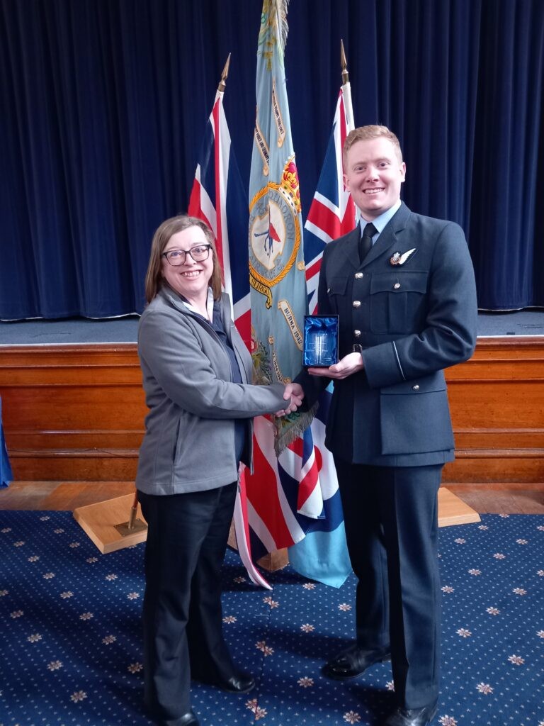 Mick & Yvonne attended the latest WSO/WSOp graduation for 45 Sqn at RAF Cranwell on Friday 13th March. The JD2E sponsored award for excellence in the field of land studies went to Flying Officer Harry East.